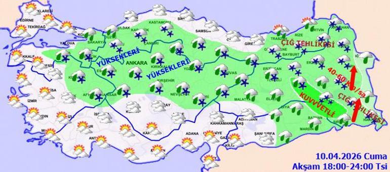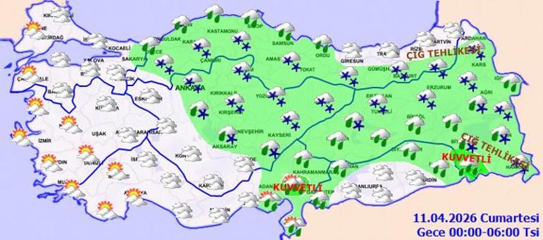 Meteoroloji Genel Müdürlüğü tarafından yapılan son değerlendirmelere göre: Ülkemiz genelinin çok bulutlu, Marmaranın kuzey kıyıları, Doğu Akdeniz, İç Anadolu (Konya ve Karaman hariç), Karadeniz, Doğu ve Güneydoğu Anadolu ile Sakarya, Bursa, Bilecik, Kütahya, Afyonkarahisar çevreleri ve Balıkesir'in kuzey ilçelerinin aralıklı yağışlı geçeceği tahmin ediliyor. Genellikle yağmur ve sağanak, Güneydoğu Anadolu’da yer yer gök gürültülü sağanak, iç ve doğu kesimlerde karla karışık yağmur ve yükseklerinde kar şeklinde görülecek olan yağışların; Doğu Akdeniz’in doğusu, Doğu Karadeniz ile Ordu, Erzurum, Bingöl, Muş, Bitlis, Şırnak, Hakkari ve Siirt çevrelerinde yerel kuvvetli olması bekleniyor. Rüzgarın; Doğu ve Güneydoğu Anadolu’nun doğusunda güney ve güneybatı yönlerden kuvvetli olarak (40-60 km/saat) esmesi bekleniyor. İç ve doğu kesimlerde buzlanma ve don olayı, Doğu Karadeniz'in iç kesimleri ile Doğu Anadolu'da yüksek kar örtüsüne sahip eğimli alanlarda çığ ve kar erimesi tehlikesi bulunmaktadır.