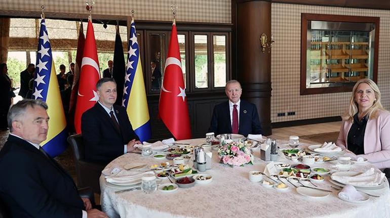 Cumhurbaşkanı Recep Tayyip Erdoğan, Belek Turizm Merkezi'ndeki NEST Kongre ve Fuar Merkezi'nde devam eden "Antalya Diplomasi Forumu" kapsamında bu sabah Bosna Hersek Devlet Başkanlığı Konseyi üyeleri Zeljka Cvijanovic, Denis Beirovic ve Zeljko Komsic ile çalışma kahvaltısında bir araya geldi.