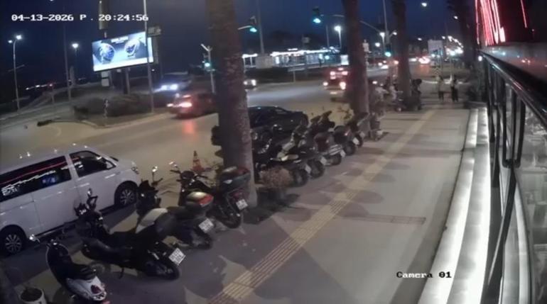 Öte yandan, kaza anının çevredeki bir güvenlik kamerası tarafından saniye saniye kaydedildi. Görüntülerde, motosiklet sürücüsü Karaoğlu'nun otomobille çarpışıp motoruyla birlikte yola savrulduğu anlar yer aldı.