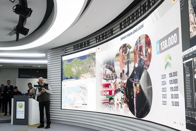 "Bu yıl da orman yangınlarıyla mücadeleyi 28 uçak, 119 helikopter ve 14 İHA ile yürütmüş olacağız. Sayısı 15 adet artan hava araçlarımızla birlikte havadan müdahale kapasitemiz 462 ton su atmaya yükselmiş durumda. Kara gücümüzde 1953 arazöz, 2 bin 766 ilk müdahale aracı ve 878 iş makinemiz de sahada olacak. Teknolojiyi insan tecrübemizle ve gücümüzle birleştirerek mücadelemizi de güçlendirmeye devam ediyoruz. İHA'larımız, akıllı sistemlerimiz ve karar destek mekanizmalarımız sahadaki arkadaşlarımızın emeği ve tecrübesiyle birleşerek gerçek anlamına ulaşmış olacak. Bu yıl orman kahramanı arkadaşlarımızın sayısını da 25 binden 28 bine çıkarmış durumdayız. Sayıları 138 bini aşan orman gönüllülerimiz de sahadaki mücadelemize en büyük desteklerden birisi olacak."