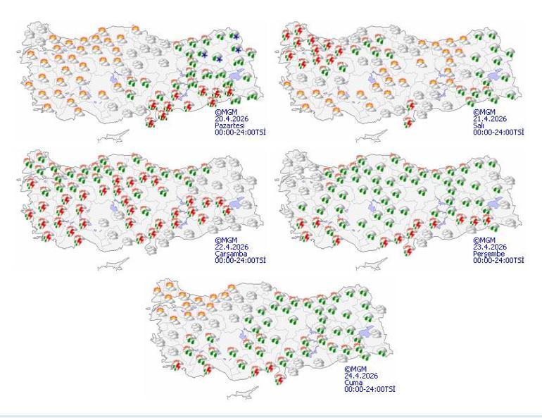 İzmir'de ise pazartesi ve salı parçalı bulutlu havanın etkili olacağını belirten Özdemirci, çarşamba günü ise gök gürültülü sağanak görüleceğini, kentte en yüksek sıcaklığının hafta boyunca 22 ila 24 derece arasında olmasının beklendiğini kaydetti.