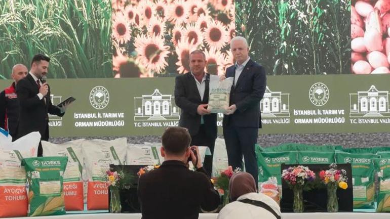 Sürdürülebilirlik, yerli üretimin desteklenmesi ve âtıl tarım arazilerinin değerlendirilmesi amacıyla İstanbul Valiliği olarak, Tarım ve Orman Bakanlığı ile, çiftçilere tohum desteği sağlandı. İstanbul Valiliği ve Tarım Ve Orman Bakanlığı tarafından desteklenen bütçe kapsamında Tohum Temini Töreni ile İstanbul genelinde bin 58 çiftçiye, 49 bin 741 dekar alanda uygulanmak üzere toplam 84 bin 338 kg tohum dağıtıldı. Çatalca'da 323 çiftçiye, 15 bin 494 dekar alanda uygulanmak üzere 57 bin 890 kilogram çeltik tohumu, 4 bin 500 kilogram ayçiçeği tohumu, 3 bin 276 kilogram silajlık mısır ve 800 kilogram barbunya tohumu dağıtıldı. Çatalca Ormanlı Mahallesi muhtarı Sevinç Köse, Vali Davut Gül'e Çatalca Ormanlı pirincini takdim etti. Temsili Tohum temini için çiftçilerin sahneye gelmesinin ardından toplu fotoğraf çekimi gerçekleştirildi.